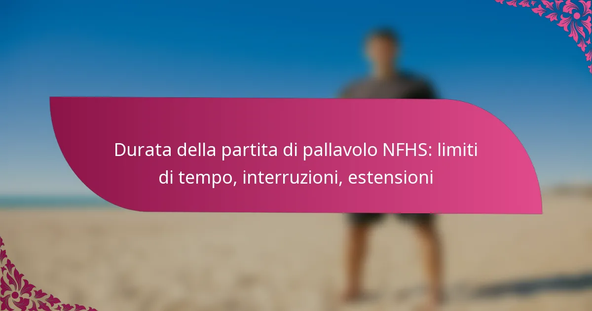 La durata di una partita di pallavolo NFHS può variare notevolmente, tipicamente durando da un’ora a due ore, influenzata da fattori come il numero di set e il sistema di punteggio. Comprendere i limiti di tempo specifici e le interruzioni, comprese le pause e gli infortuni, è essenziale per le squadre per strategizzare in modo efficace e gestire il loro tempo di gioco durante le competizioni.