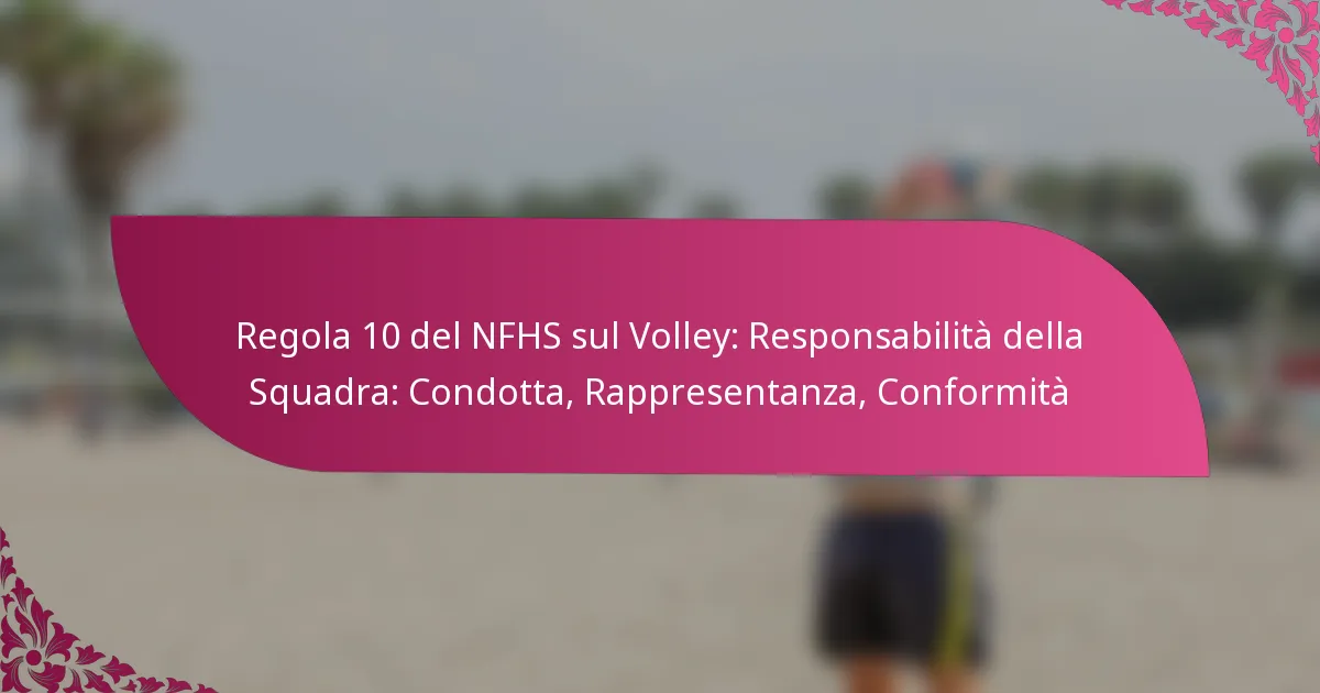 La Regola 10 della NFHS delinea le responsabilità delle squadre riguardo alla condotta, alla rappresentazione e alla conformità durante le competizioni di pallavolo. Comprendere queste responsabilità aiuta a garantire il gioco leale e lo spirito sportivo, chiarendo anche le conseguenze delle violazioni.