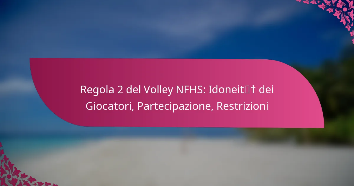Le regole del volley NFHS stabiliscono criteri chiari per l’idoneità e la partecipazione dei giocatori, concentrandosi su età, livello scolastico, standard accademici, residenza e implicazioni relative ai trasferimenti. Queste linee guida sono essenziali per mantenere una competizione equa e la sicurezza degli atleti, poiché includono anche restrizioni legate all’esperienza pregressa e alla salute. Comprendere queste regole è fondamentale per giocatori, allenatori e scuole per garantire la conformità e migliorare le opportunità di partecipazione.